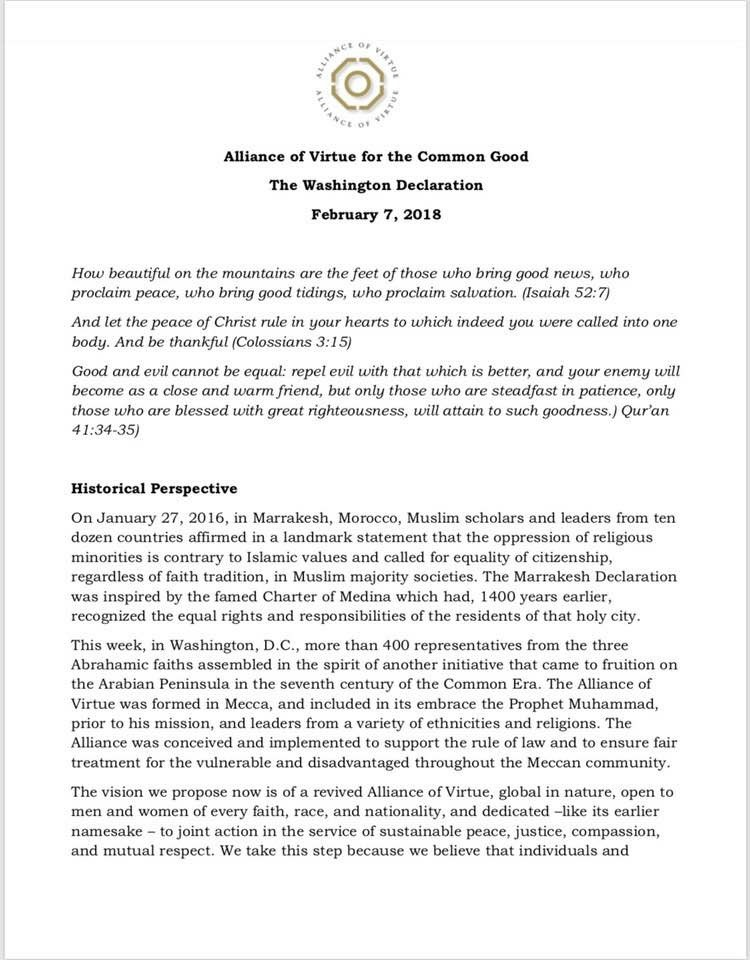 Washington Declaration 2018 from 400 religious leaders